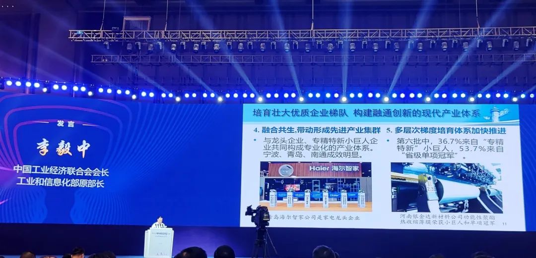 李毅中會長在講話中,把銀金達由“專精特新”小巨人成長為單項冠軍示范企業(yè)的發(fā)展經(jīng)驗作為了典型案例。